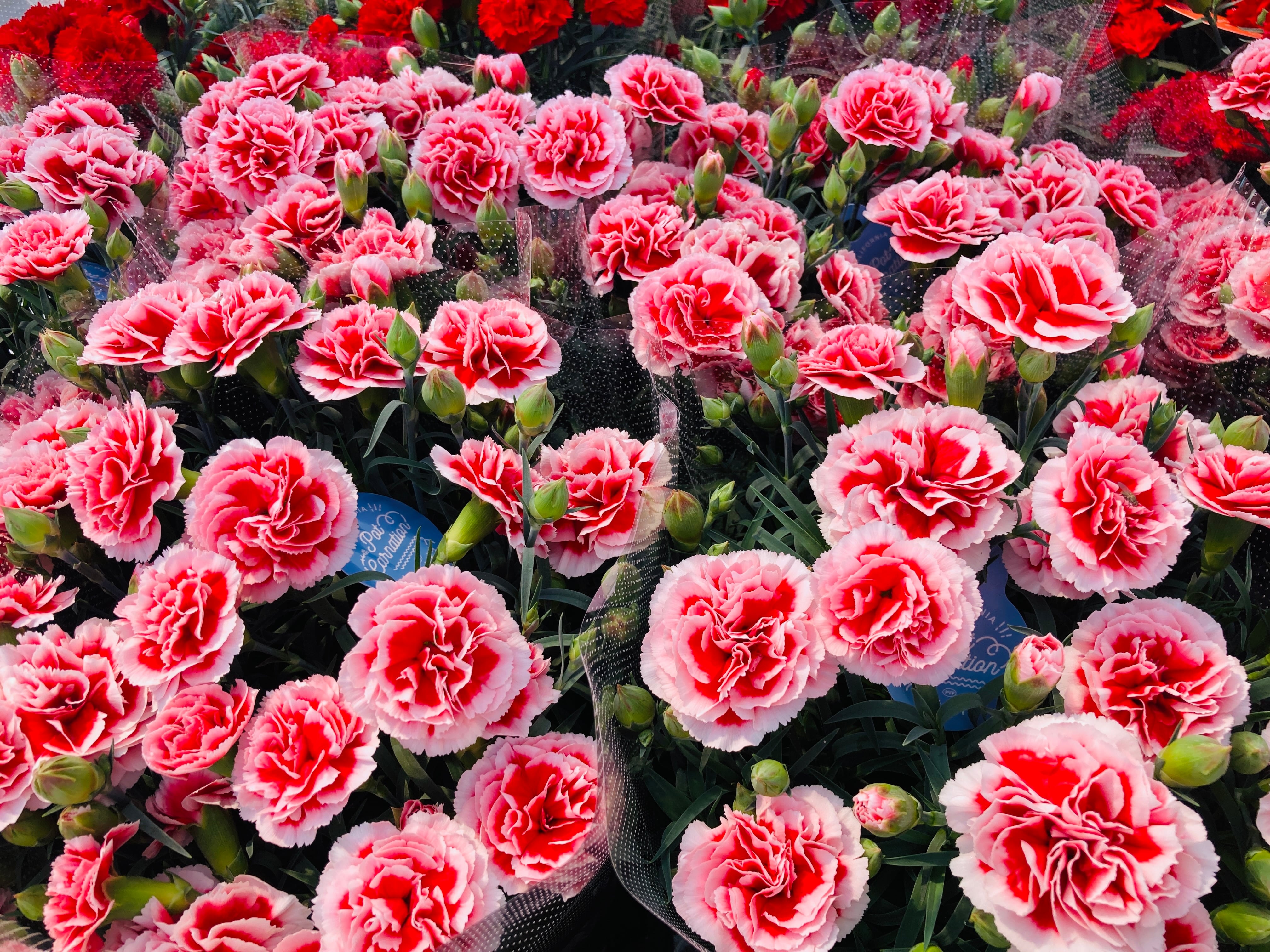 カーネーションいちごホイップは、最近1番人気の色で美しい赤にエッジの白色が特徴です。