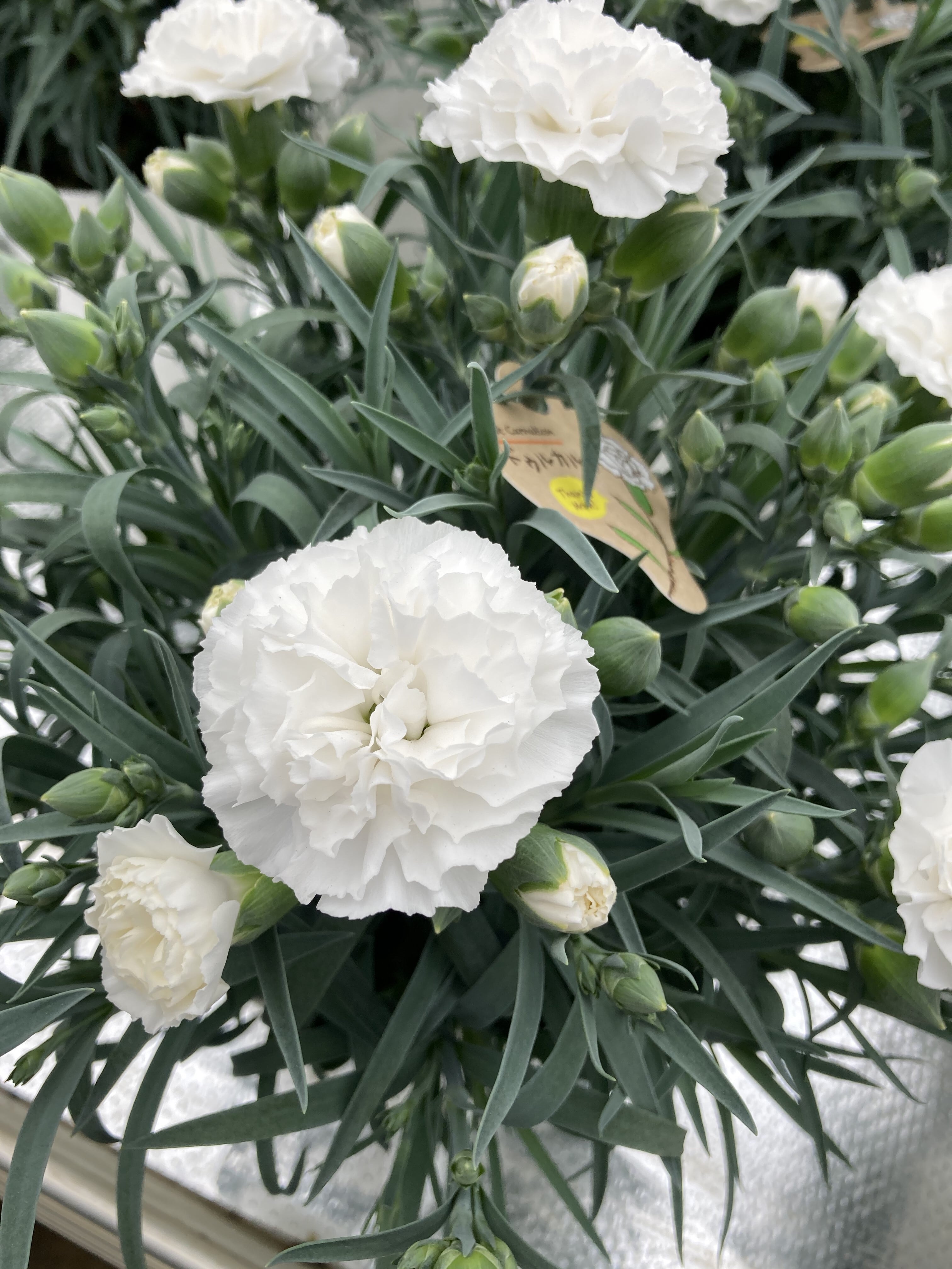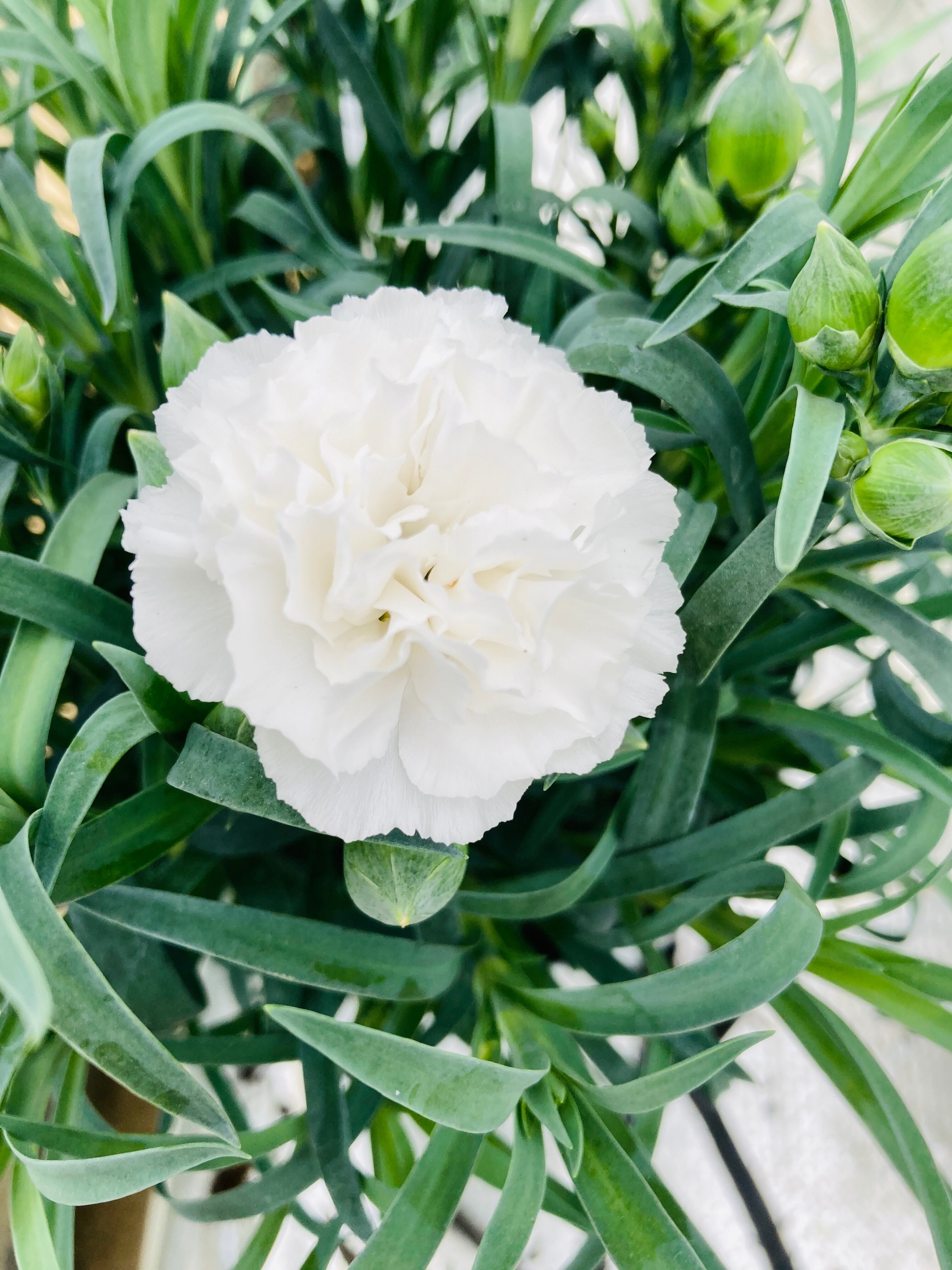 清らかな白は深い尊敬や感謝を表現し、特別な人へのリスペクトを示すのに適してます。上品な雰囲気漂う白いカーネーション。心を込めて育てられた花々は、真っ白な花びらが清楚で美しい印象を与えます。贈り物としても最適です。お祝い事や記念日、大切な方への贈り物にぴったりの一鉢です。